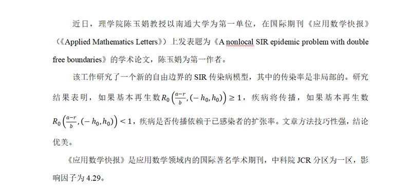 陈玉娟教授在中科院一区期刊《应用数学快报》发表文章
