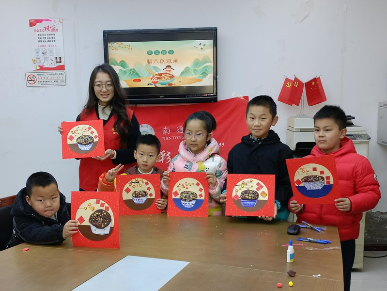 本次活动以“暖暖中国味,浓浓腊八节”迎腊八文化为主题。志愿者杨婧从腊八节的由来、腊八节的传说、腊八节的美食、腊八节的各地习俗四个方面,向小朋友们详细讲解了腊八文化,帮助他们更好地了解和传承中国优秀的传统文化。志愿者严硕楷选择以腊八粥黏土画和传统民间剪纸教学的形式,带领小朋友们感受中华传统文化的含蓄内敛,兼容并蓄。小朋友们亲手制作了形态各异、食材丰富的腊八粥黏土画。通过这次亲身体验,孩子们更加贴切地感受到传统文化的丰富多彩,生动有趣。