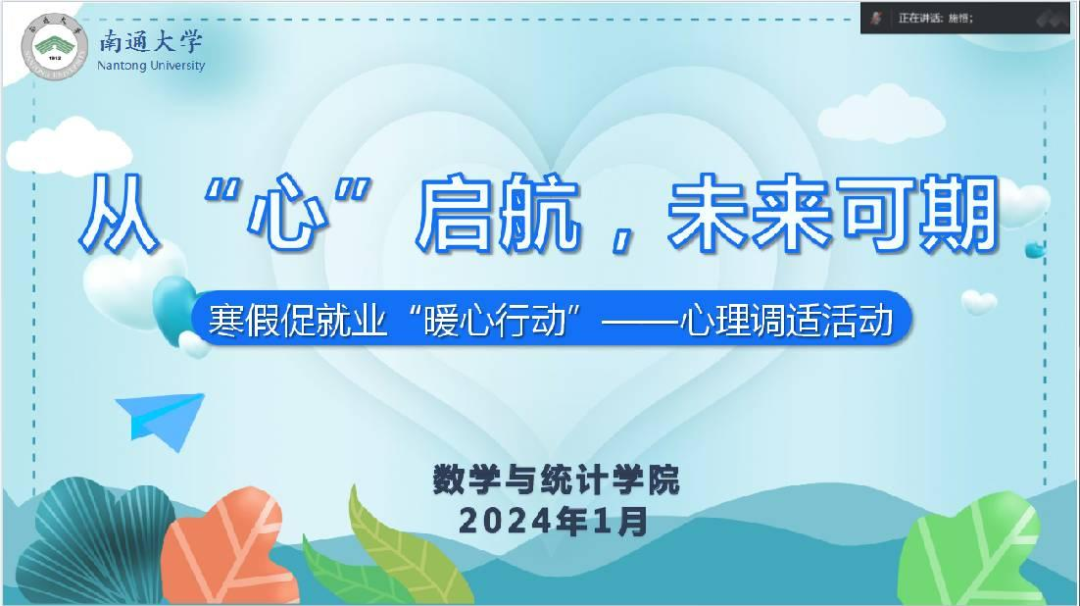 为有效缓解毕业生的就业“心”问题,找准人生方向,为未来的职业发展奠定坚实基础,1月31日,yl6809永利官网集团开展寒假促就业“暖心行动”——心理调适活动。
