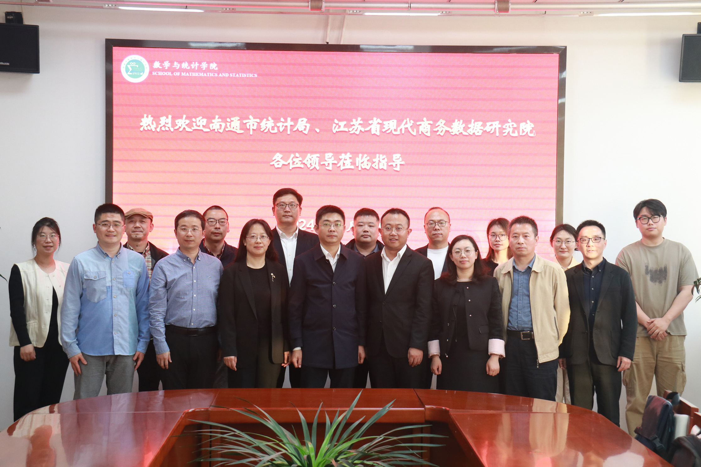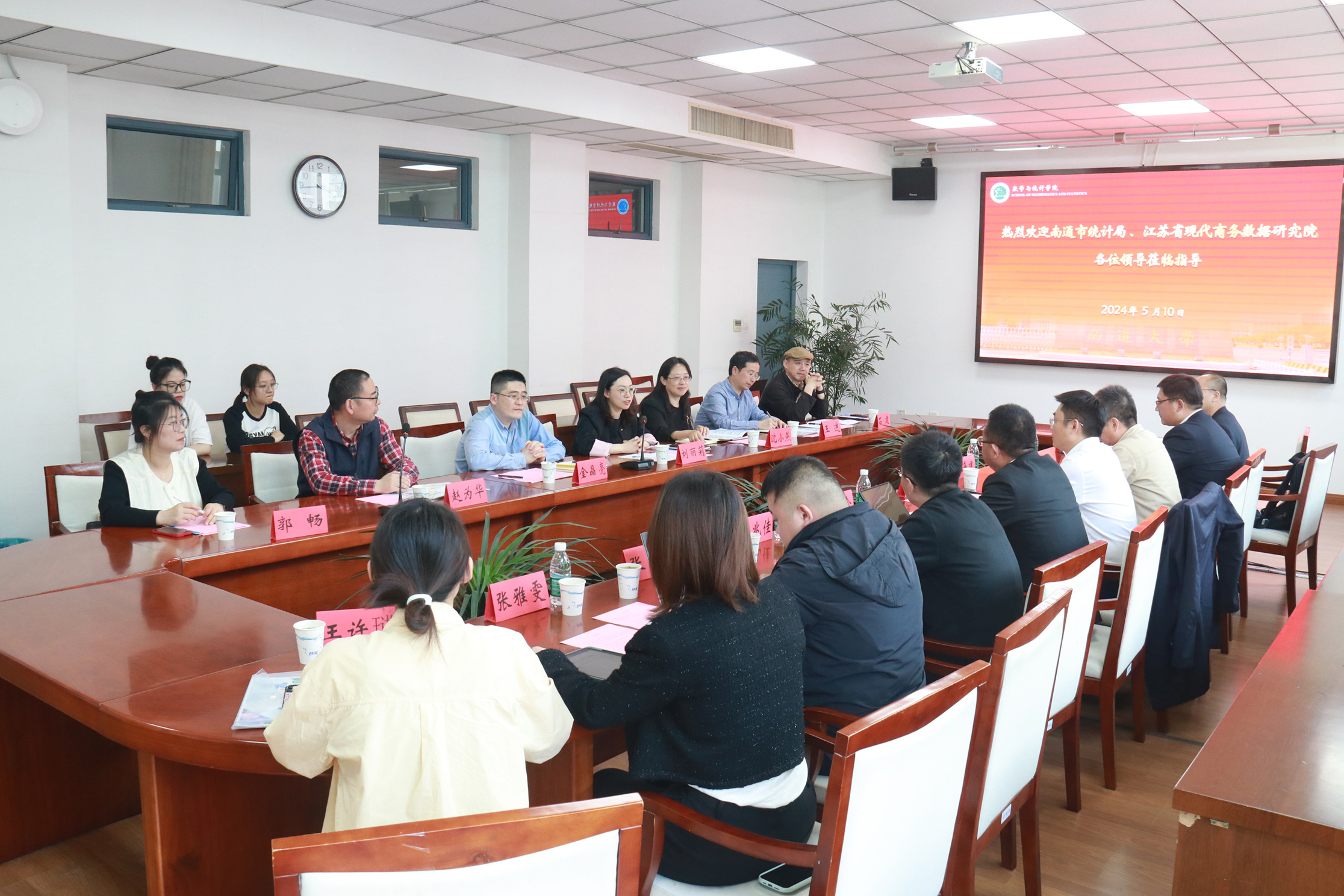 5月10日下午,南通市统计局总统计师王建、江苏省现代商务数据研究院董事长王金合一行来校开展产学研合作洽谈。yl6809永利官网集团、江苏省统计科学研究基地(yl6809永利集团)携手商学院、信息科学技术学院有关负责同志接待了来宾。