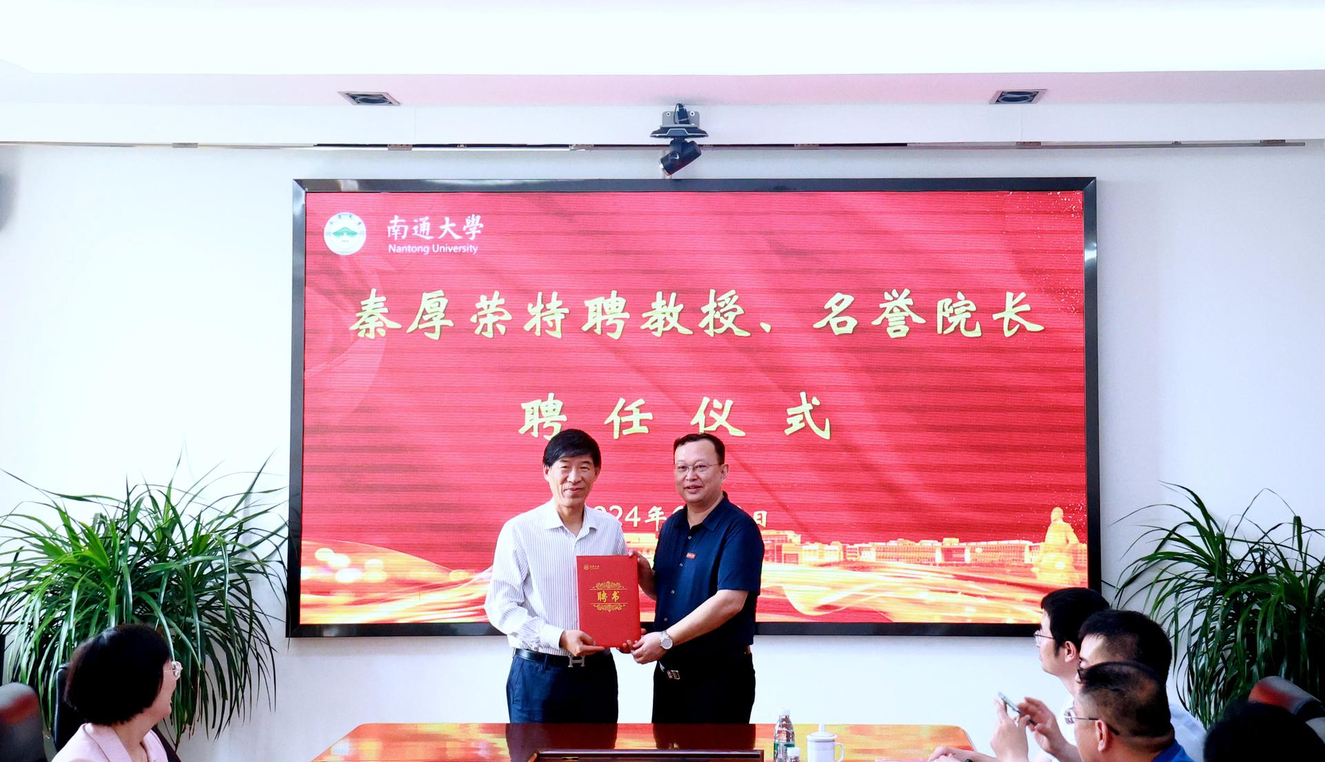 6月13日上午,我校举行聘任仪式,聘请南京大学秦厚荣教授为我校特聘教授、yl6809永利官网集团名誉院长。校党委书记尚庆飞出席聘任仪式并代表学校为秦教授颁发聘书,副校长陈玉娟主持聘任仪式,党委常委、组织部部长吴如高参加仪式。