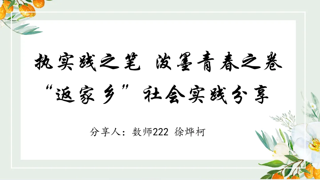 徐烨柯同学多次参加”返家乡”社会实践活动,曾获得“校优秀青年志愿者”、“暑期返家乡社会实践先进个人”等荣誉。在报告会中,她详细讲述自己参加“返家乡”实践活动期间的经验与感悟,并为新生指出“返家乡”社会实践活动的参与方法。同时,她也鼓励新生们要积极投身于各项社会实践活动中,与新时代同向同行、共同前进。
