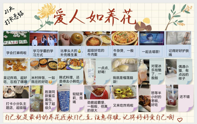 活动期间,同学们热情高涨,积极参与,选择适合自己的习惯目标,如每天阅读一定页数的书籍、坚持锻炼身体、早起背单词等。工作人员为参与者们建立了线上打卡平台,方便同学们记录自己的坚持与成长。 21 天里,同学们相互鼓励、相互监督,共同克服困难。同学们纷纷表示,通过这次活动,不仅成功养成了好习惯,还增强了自己的自律能力和毅力。
