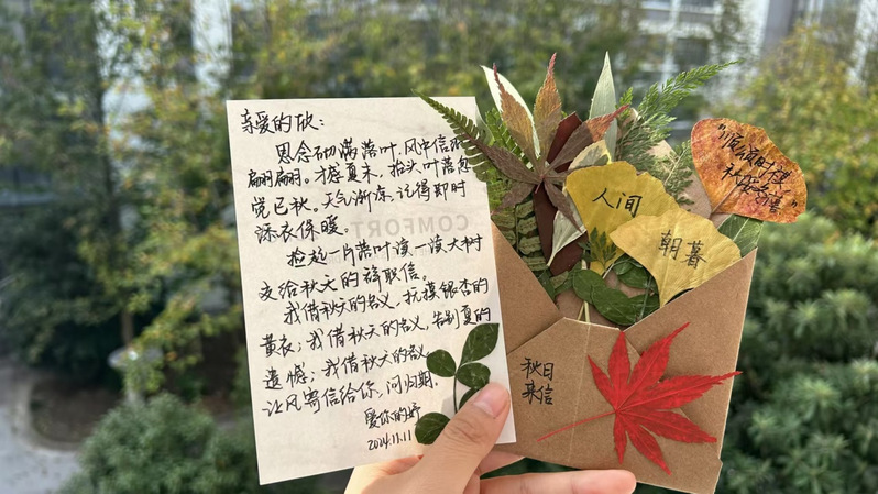 活动过程同学们大展身手,或是拿起手中的相机、手机,捕捉秋的千姿百态;或是发挥自己的创意灵感,利用采撷来的落叶制作出一个个超级精美的季节限定书签;抑或是拿起笔,写下一篇篇关于秋日的诗歌、散文等等。他们用自己的才华和创意为这秋日增添一抹绚丽的色彩!