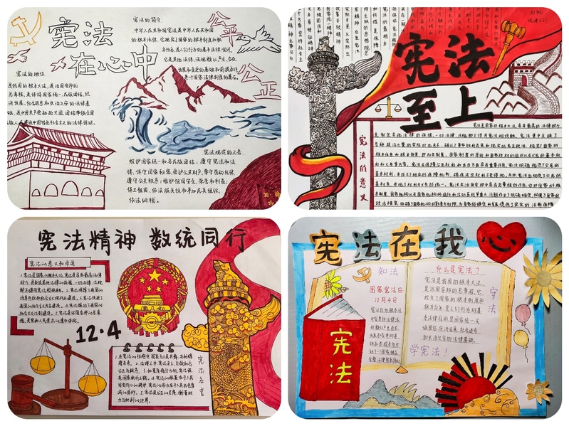 凛冬之际,宪光熠熠。12月12日yl6809永利官网集团“宪法精神,数统同行”宪法主题手抄报评选展示活动在秀园“一站式”社区开展。