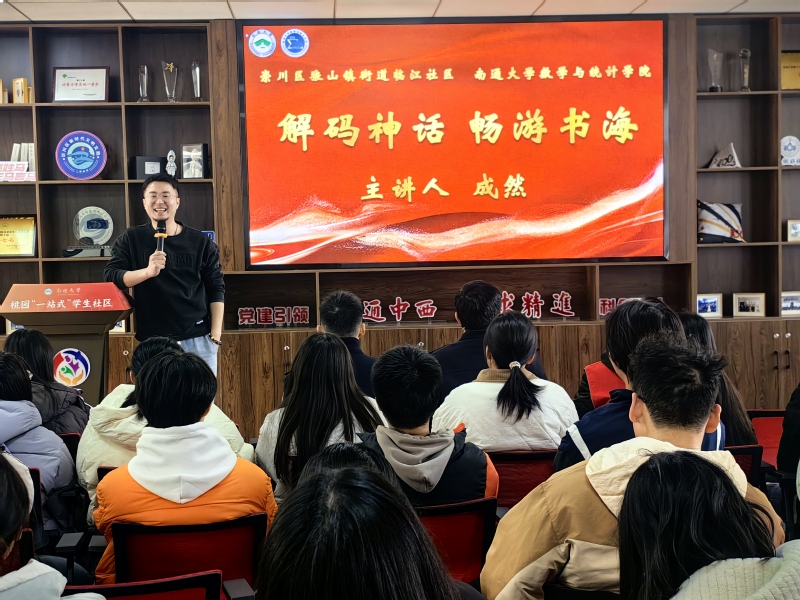 省级全民阅读推广人、帆书读书会(南通)主理人成然老师,以《中国文化课》为主题,从《哪吒2》中蕴含的中国传统文化元素出发,并结合当下社会热点,引导同学们思考传统文化在现代社会中的传承与发展。他鼓励同学们要主动学习传统文化,从中汲取智慧和力量,坚定文化自信,做中华优秀传统文化的传承者和弘扬者。