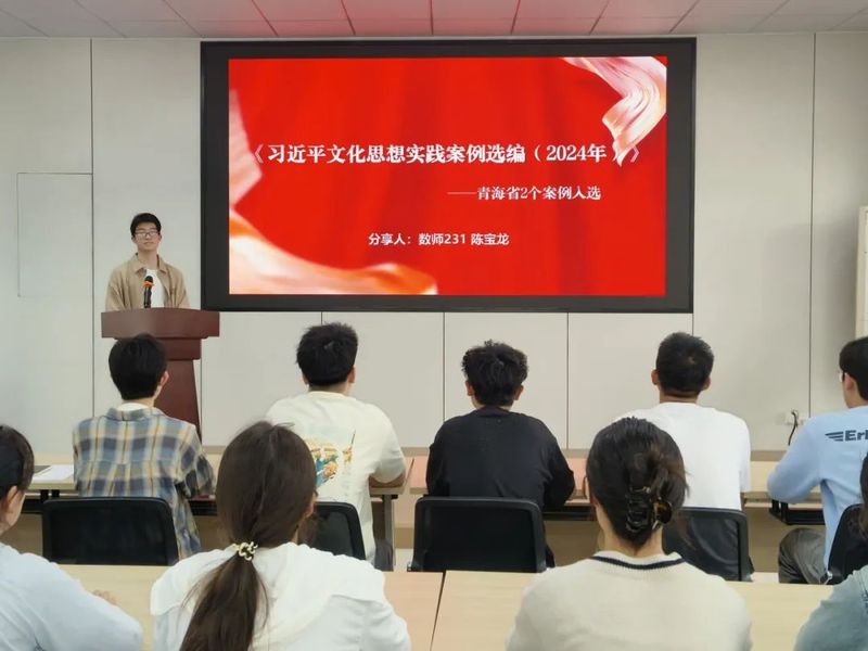 陈宝龙同学选取书中青海省的两个案例,从三个方面分享自己的思考与感悟。他认为,这两个案例充分展现青海深入学习贯彻习近平文化思想的经验做法、亮招实招和生动实践。在学习过程中,深切感受到习近平文化思想强大的实践伟力,并表示在新时代新征程中,青年学生要深入学习贯彻习近平文化思想,借鉴青海等地实践经验,坚定文化自信,勇担文化使命,为建设社会主义文化强国、中华民族现代文明努力奋斗。