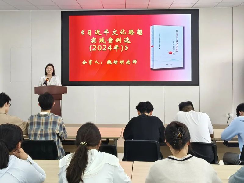 本次师生同读一本书的书目为《习近平文化思想实践案例选编(2024年)》,学院团委副书记魏妍妍老师为大家作详细解读。研24数学学硕赵梦佳同学、数师231班陈宝龙同学和数师242班吴欣芮同学分享他们学习阅读《习近平文化思想实践案例选编(2024年)》的理解与感悟。