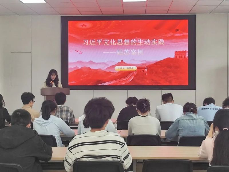 吴欣芮同学结合姑苏的历史文脉赓续、南京的小剧场建设、哈尔滨的文旅创新、柳州的“名企外宣”策略四个典型案例,从文化传承、文化惠民、文化创新和文化交流四个方面,向同学们分享自己阅读《习近平文化思想实践案例选编(2024年)》的思考与感悟。她表示深入学习贯彻习近平文化思想是推动文化建设实践的关键指引,也是助力文化繁荣发展的核心动力。青年学生应积极投身文化建设,推动中华文化繁荣发展,为文化强国建设贡献自己的青春力量。