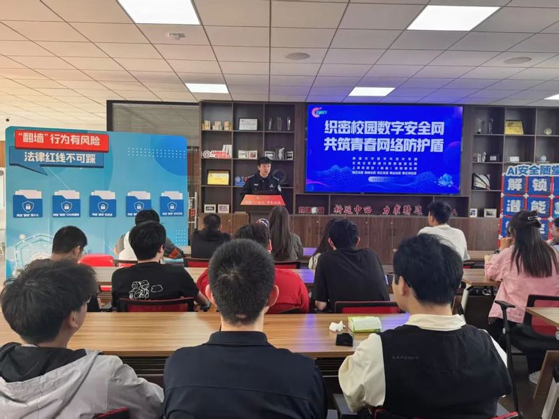长航公安的警官们亲临现场,带来AI技术被恶意滥用的典型案例。这些案例中,伪造信息、窃取数据等违法行为触目惊心,警官们结合办案经验,从技术原理、犯罪手段到防范要点,为同学们提出了一系列实用且针对性强的建议,让同学们对新兴网络风险有了清晰认知。