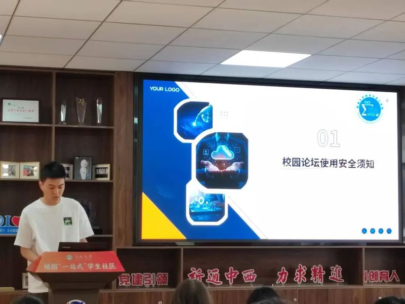 学生代表顾洋洋结合校园论坛、自媒体运营等大学生日常网络行为场景,分享网络安全的注意事项,从账号密码保护、信息发布规范到社交平台互动准则,引起同学们的强烈共鸣。
