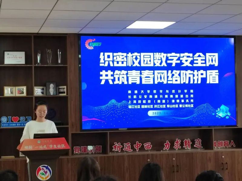 为迎接“4.15全民国家安全教育日”,切实增强大学生网络安全意识,强化法治观念与风险防范能力,筑牢校园网络安全坚实防线,4月10日下午,yl6809永利官网集团在“一站式”桃园开展“织密校园数字安全网 共筑青春网络防护盾”国家安全之网络安全教育活动。南通市崇川区狼山镇街道临江、曹公祠、洪江、军山社区、长航南通公安南通派出所、yl6809永利官网集团相关人员及学生代表们参与此次活动。