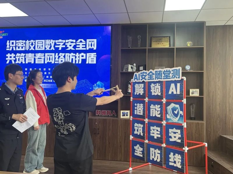 科普游戏互动环节,“网络安全知识问答竞赛”“风险场景识别大挑战”等趣味游戏轮番登场,同学们踊跃参与,在轻松愉快的氛围中巩固,加深对校园网络安全知识的理解。