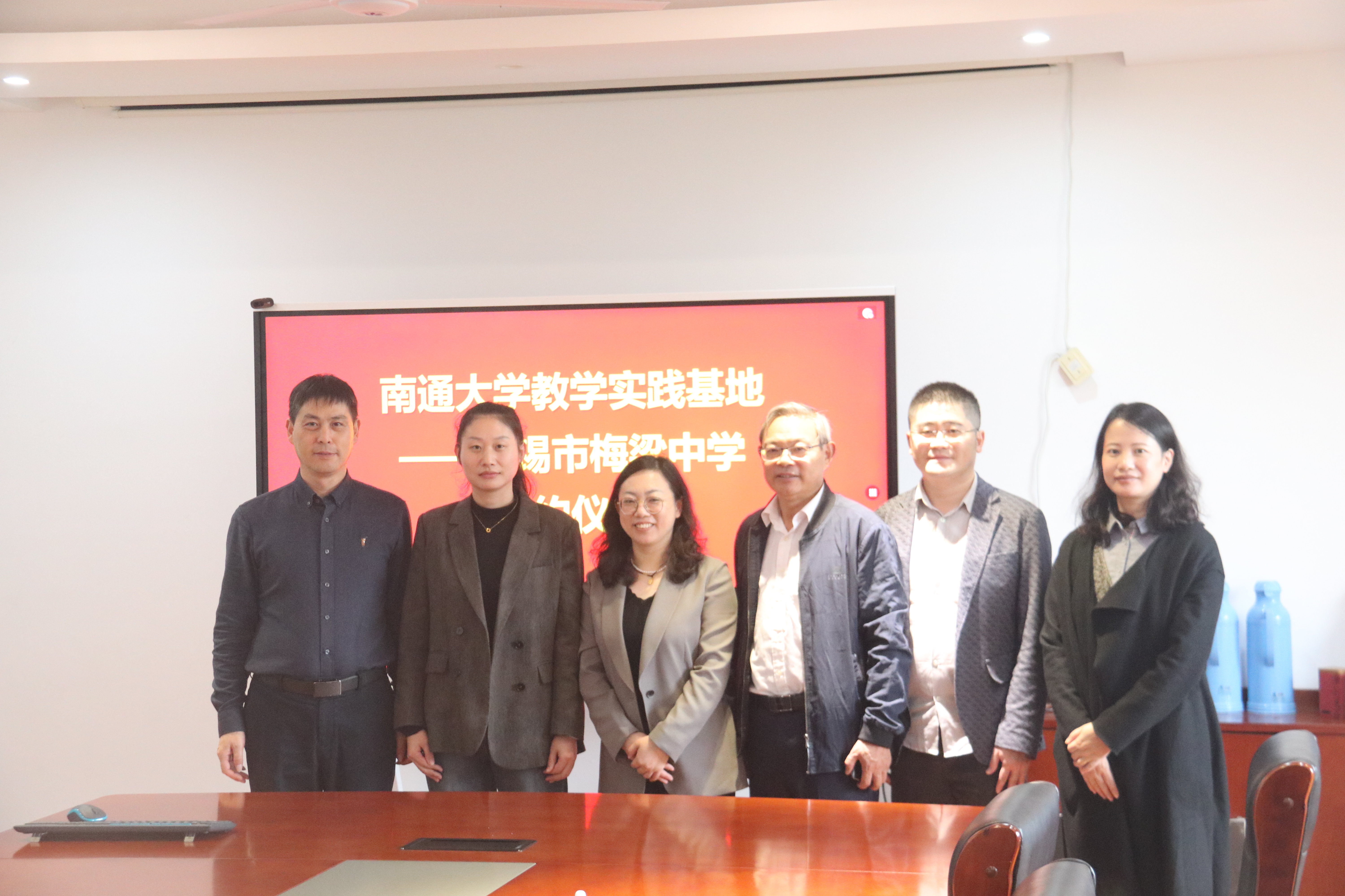 在昆山市秀峰中学,向辉对学院一行的到访表示热烈欢迎,详细介绍了学校的育人理念以及基础教育成果,期待双方在教育教学改革、优秀大学生实习实践、在职教师师资培训与能力提升等多个层面开展深度合作,实现优势互补。学院党总支书记刘丽莉介绍了学院在学科建设、师资力量和人才培养等方面的基本情况。双方共建实习基地,不仅能为我院学生提供宝贵的实践平台,锤炼其教学技能与职业素养,也能借助高校的智力资源反哺基础教育,共同探索创新人才培养模式。交流结束后,双方共同签署了协议并为“教学实践基地”揭牌。
