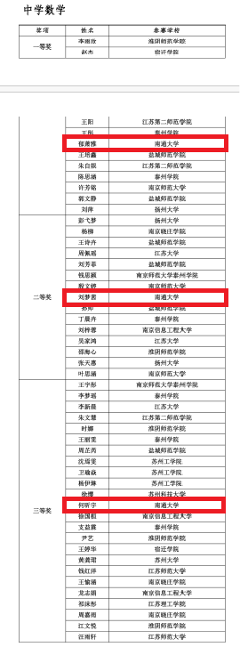 近日,由江苏省教育厅主办、江苏省教师教育专业指导委员会承办的第十四届江苏省师范生教学基本功大赛结果揭晓。我院三名学子在中学数学组比赛中表现优异,分获一、二、三等奖。