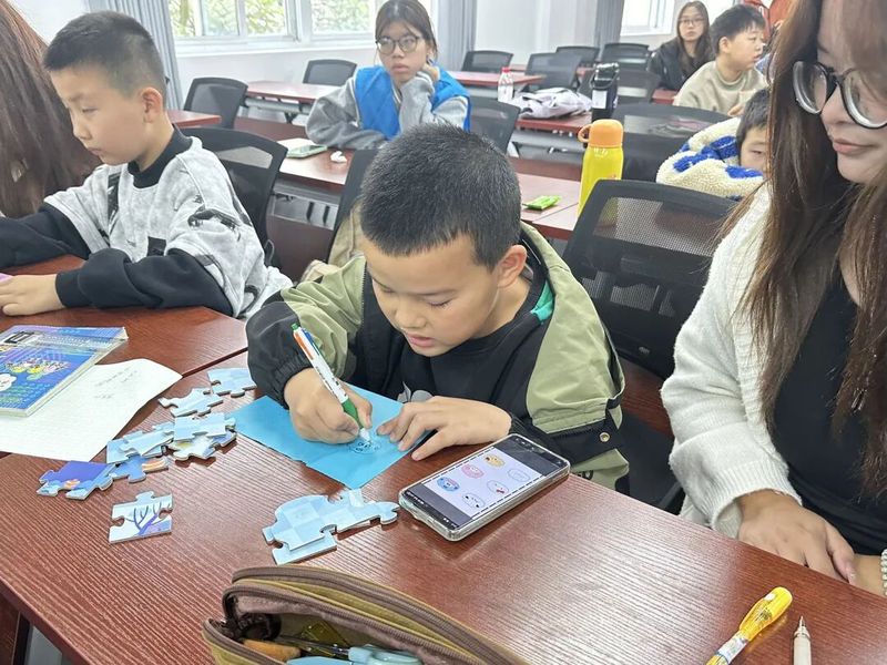 午后的活动氛围愈发热闹,“共绘五彩水饺”互动环节拉开序幕。志愿者与孩子们一对一搭档,拿起画笔尽情创作。有的孩子给水饺画上笑脸花纹,有的搭配上鲜艳的馅料色彩,一个个形态可爱、充满创意的“冬至水饺”跃然纸上,在欢声笑语中,孩子们对冬至习俗的记忆更加深刻。