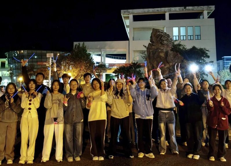 作为本次团建的核心环节,“猫鼠游戏”以其独特的互动性和趣味性点燃了全场氛围。活动前,班委团队结合新生特点设计了兼具挑战性与协作性的游戏规则:5-6名同学自愿报名成为“猫”,佩戴荧光棒与荧光手环;其余同学化身“老鼠”,粘贴两根荧光棒,所有参与者在指定APP内统一更换头像与昵称,隐藏“猫”的身份踪迹。随着活动指令下达,“老鼠”们率先开启两分钟逃跑倒计时,迅速分散寻找隐蔽点位;两分钟后,“猫”队全力出击,一场紧张刺激的追逐战正式打响。按照规则,“猫”需撕掉“老鼠”身上的荧光棒方可完成捕捉,且撕掉第一根后需待“老鼠”脱离视线才能再次追捕;当“老鼠”两根荧光棒均被撕掉时,将正式“同化”为“猫”,并在班级群内同步信息,领取荧光手环后加入追捕队伍;若“老鼠”成功撕掉“猫”身上的荧光棒,则“猫”直接淘汰。游戏时间里,同学们尽情挥洒汗水,在奔跑与追逐中释放活力。大家时而默契配合躲避追捕,时而果断出击完成任务,赛场之上满是欢声笑语与加油呐喊。活动尾声,班委根据同学们的参与表现,评选出“最佳猫王”与“最佳鼠王”并颁发纪念奖状,为趣味竞技环节画上圆满句号。