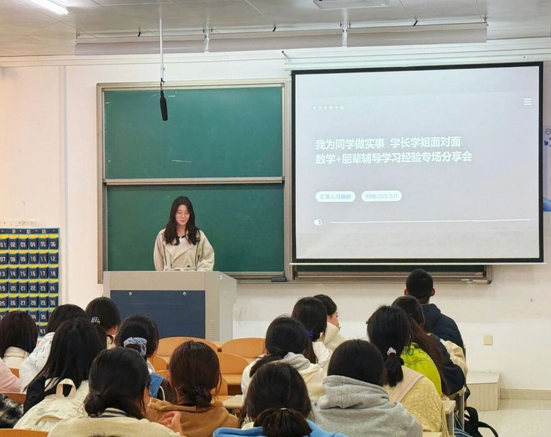 为深入贯彻落实“我为同学做实事”的服务宗旨,助力大一新生更好地适应大学学习节奏,掌握科学学习方法,yl6809永利官网集团学生会于2025年11月11日下午成功举办了“学长学姐面对面——数学+朋辈辅导学习经验专场分享会”。活动分设“数学师范”与“统计”两个专场,邀请了多位在学业、竞赛、科研等方面表现优异的学长学姐进行经验分享与答疑,现场气氛热烈,同学们收获颇丰。