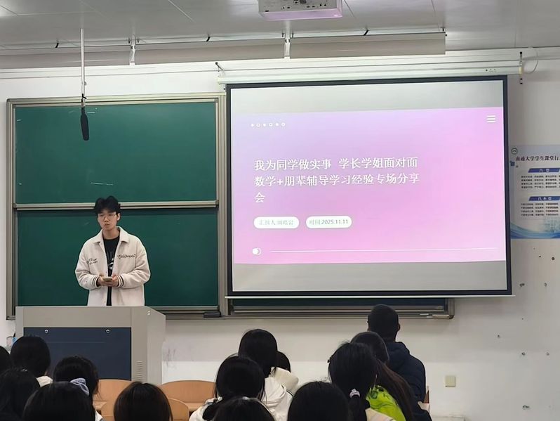 最后,数师221班李敖同学围绕“从迷茫到成长”展开叙述,分享大一因目标缺失、同辈压力陷入迷茫的经历,强调大学需完成从被动接受到主动探索的转变。迷茫期是锻炼独立思考的黄金期,建议主动突破舒适区。后续李敖同学从课程学习、资源利用、竞赛科研、评奖评优四方面向学弟学妹们分享自己的方法。