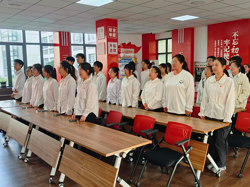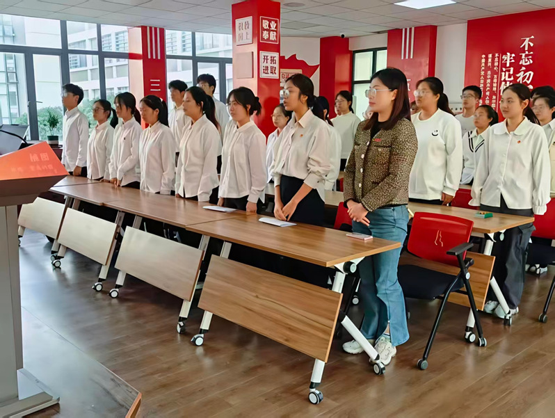 学院团委组织部部长吴嘉莉领誓,全体新团员面向团旗,高举右拳,庄严宣誓。铿锵有力的誓言回荡在整个会场,彰显出青年一代坚定不移听党话、跟党走的信念与决心。