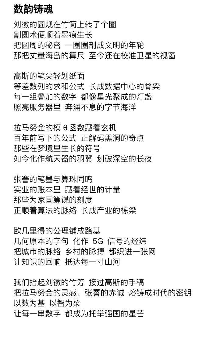 本次大赛设置多个创作类别,涵盖图文、视频、编程、游戏设计及其他创新形式,为参赛者提供丰富表达空间。共征集30余份数学科普作品,评选出若干优秀作品,所有作品紧扣“数学”“传承”“未来”“强国”核心内涵,兼具科学性与传播力。
