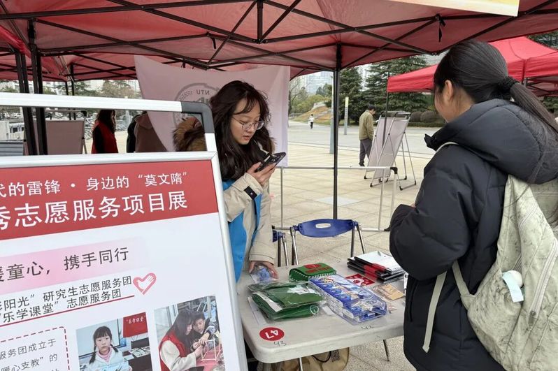 志愿者精心布置的摊位前,围满了参与的同学。为让更多人了解雷锋精神,志愿者别出心裁地采用知识问答赢小奖品的新颖形式,瞬间点燃大家热情,大家纷纷停下脚步,积极参与其中。“‘螺丝钉精神’出自哪里?”等问题,涵盖雷锋生平、语录及当代志愿服务案例。志愿者化身“考官”认真出题,同学们或低头沉思,或热烈讨论,现场气氛十分活跃。只要答对5题,就能获一份承载着雷锋精神敬意与传承的小奖品。