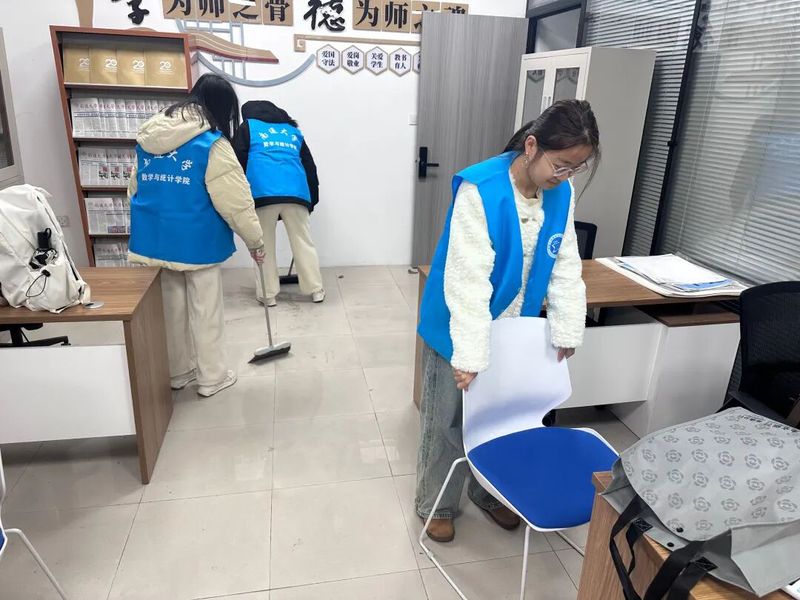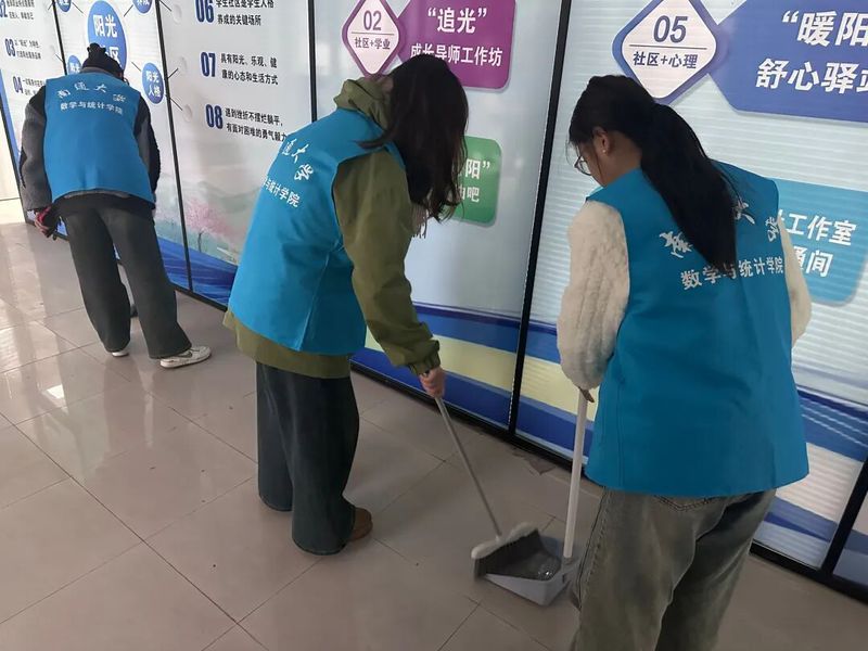 活动前期,学院学生会通过线上平台、班级群聊及线下海报等多种方式广泛宣传,吸引众多同学踊跃报名,迅速组建一支充满活力的志愿者队伍。活动当天,志愿者们身着统一蓝色志愿服,精神抖擞地前往李园和桃园一站式学生社区开展清扫工作。