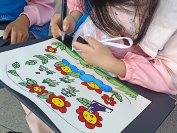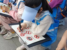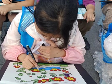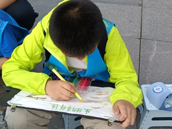 停下脚步后,大家围坐在广场上,用画笔描绘心中的“绿色家园”与“文明礼仪”。一幅幅童趣盎然的画作跃然纸上:垃圾分类的小卫士、弯腰捡拾的背影、微笑打招呼的太阳公公……孩子们争先恐后地分享自己的创意,志愿者的掌声与鼓励让这个下午格外温暖。