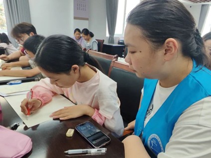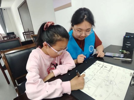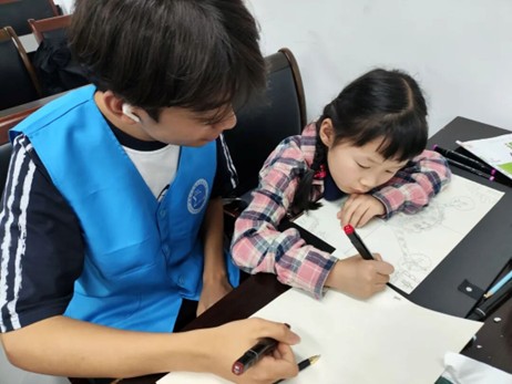 紧接着,“玩转快乐数学”环节将气氛推向高潮——趣味数独、图形拼搭、逻辑谜题……孩子们在游戏中动手动脑,志愿者们则化身“智慧向导”,耐心引导他们发现数学的奥妙。此外,志愿者们还通过画画、手工等多元兴趣课堂,激发孩子们的创造力,让学习的种子在欢笑中生根发芽。