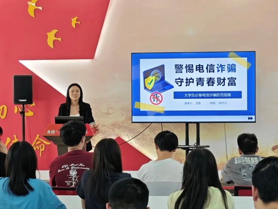为深入贯彻落实高校法治教育和反诈宣传工作,增强在校大学生对电信网络诈骗的识别能力和自我保护意识,2025年5月27日下午,yl6809永利官网集团在秀园“一站式”学生社区举办“守护青春,防诈同行”防诈反诈专题活动。