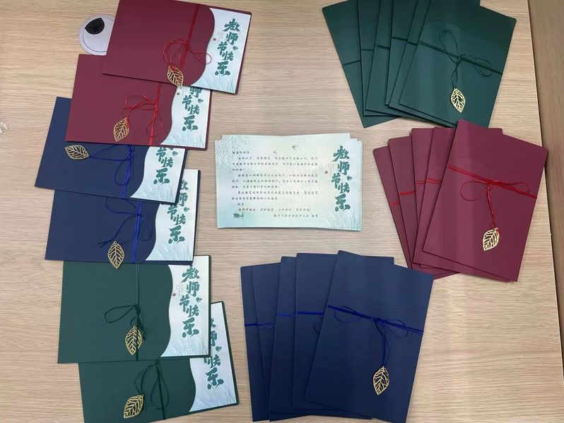活动筹备时,学子们细选每份礼物:简约有质感的礼盒里,装着实用笔记本、流畅书写笔,还有娇艳康乃馨与暖心贺卡。每一份,都藏着对老师的真切敬爱。教诲如春风感恩师恩深似海。