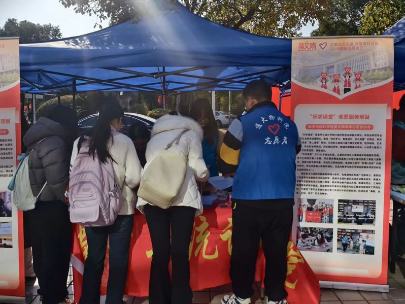 2025年12月5日第四十个国际志愿者日当天,yl6809永利官网集团团委于啬园校区二食堂门口,参与校莫文隋组织的“数智志愿·青春献力”志愿服务嘉年华活动。活动融合“奉献、友爱、互助、进步”志愿精神与数学学科特色,打造沉浸式互动体验,吸引大批本科生参与,获广泛好评。