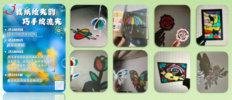 一张彩纸的斑斓,一方光影的流转,一场心灵的治愈之旅。“裁纸绘光韵・巧手绽流光”活动落幕,却不是创意与温暖的终点,而是新成长序章的开启。于数统“er”而言,活动留下的创意火花将持续点亮日常:刻纸打磨的专注力、配色迸发的审美力,会悄然融入学习生活,让他们面对学业更有韧性,发现生活之美更敏锐;收获的温暖记忆,则像种子在心底生根发芽,成为驱散焦虑、治愈疲惫的精神养分,让每位参与者往后都能因这段经历,拥有更丰盈的内心世界。
