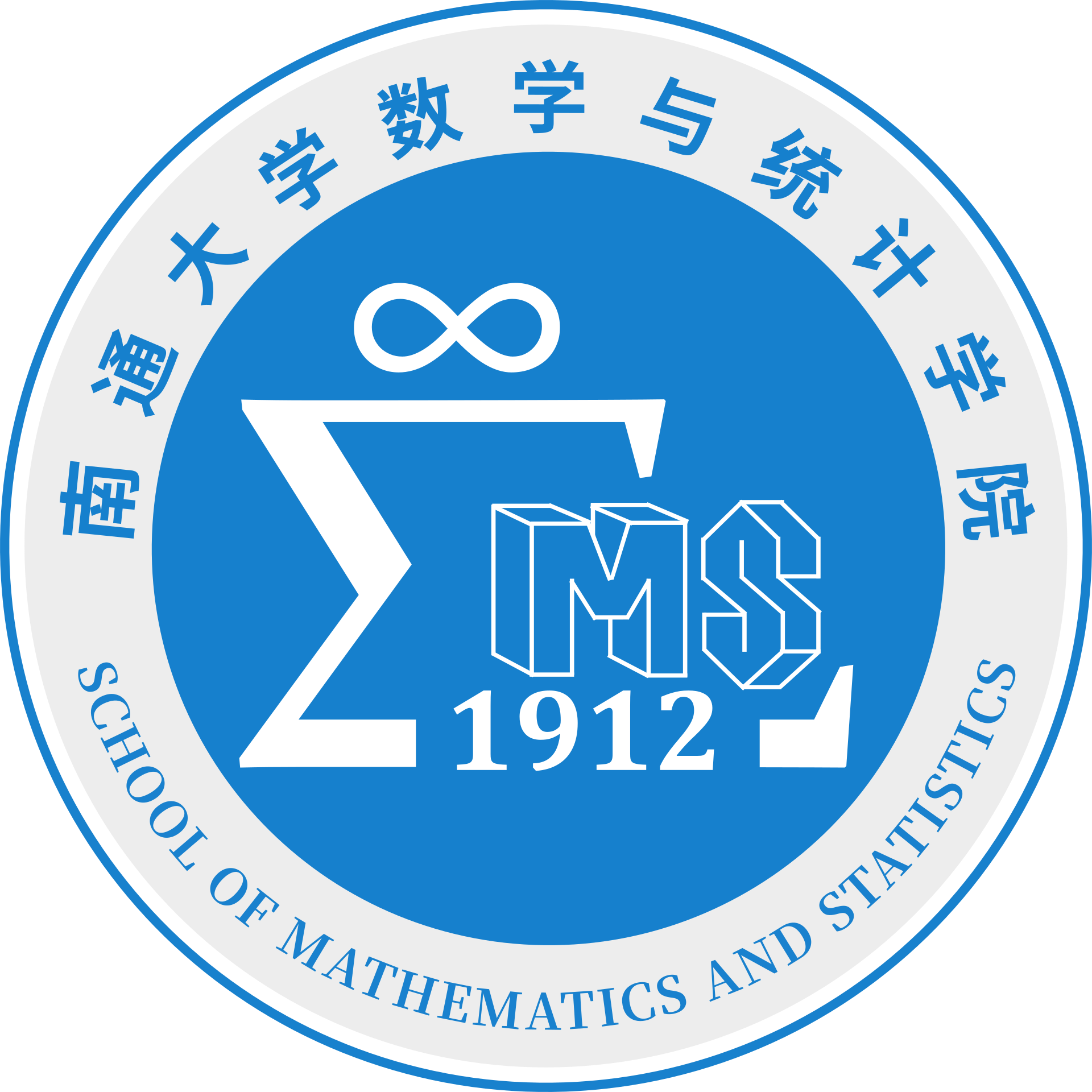 院徽设计为圆形,提取数学经典求和符号西格玛为元素,象征数学与统计学中对累加、汇总等核心运算的强调,同时也代表着我院在教学科研中不断追求全面发展的精神以及培养学生全面素养的承诺。yl6809永利官网集团办学历史可追溯到1912年南通纺专基础科和南通医专基础科,对应西格玛符号下端的数字1912。西格玛符号上端的无穷符号代表探索科学的无限可能,同时也寄予着我们对发展永无止境、奋斗未有穷期的美好期盼。